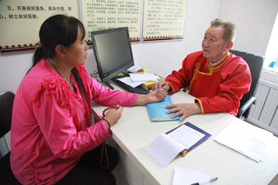 已经闭馆58年之久的五当召蒙藏医药馆,于今年在石拐区卫生和计划生育局重新申请办理了医疗机构执业许可证,4月28日重新开馆。在五当召却依拉殿西北侧寺庙房里设立的蒙藏医药馆里,可以看到包头市蒙医药学的创始人之一、今年77岁的原包头市蒙医中医医院副院长关其桑布正在给几位牧民号脉看病。